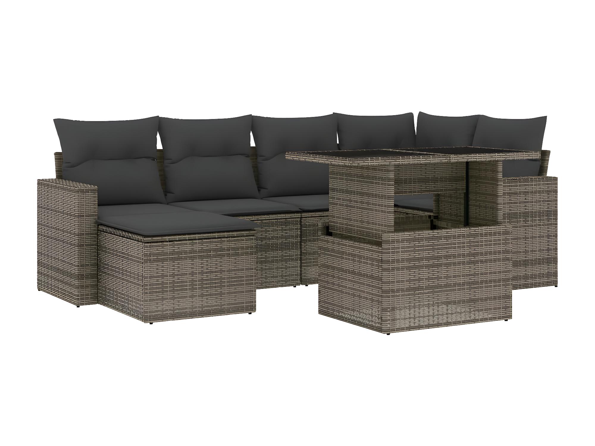 Salon de jardin avec coussins 7 pièces gris résine tressée
