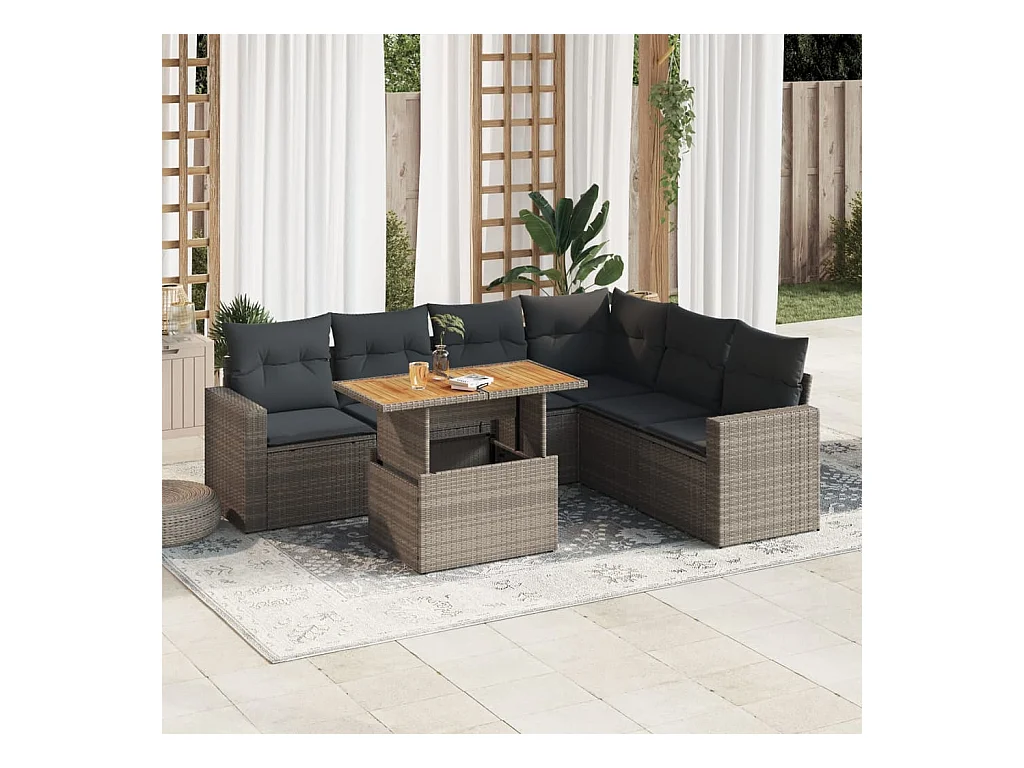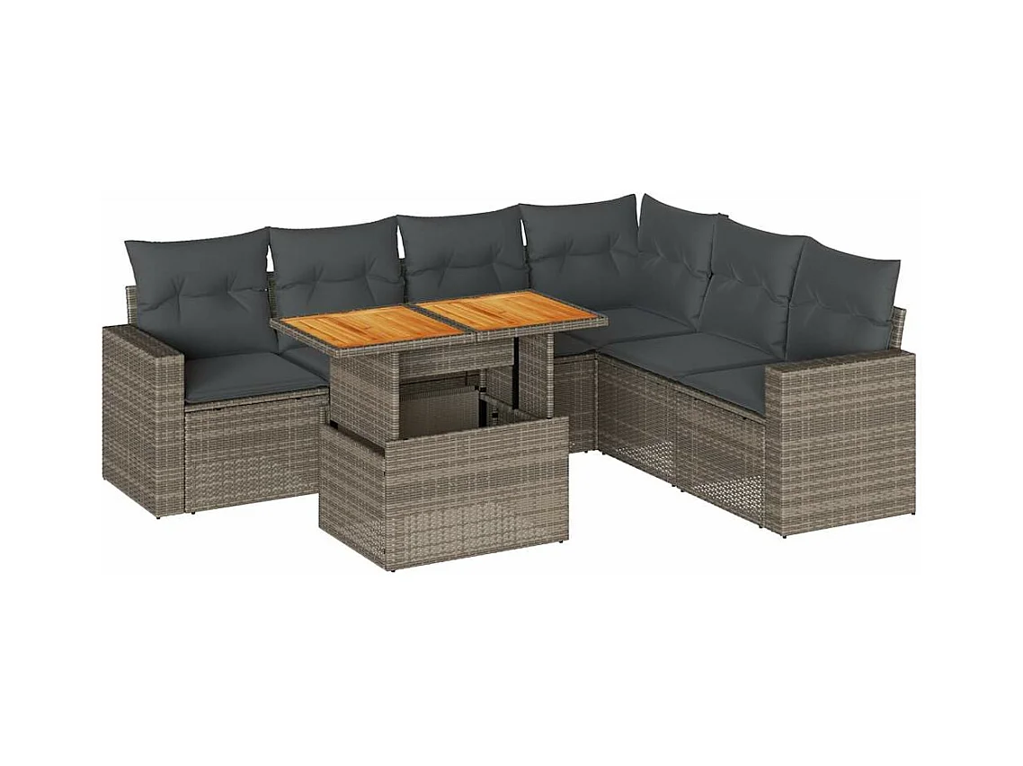 Salon de jardin avec coussins 7 pièces gris résine tressée