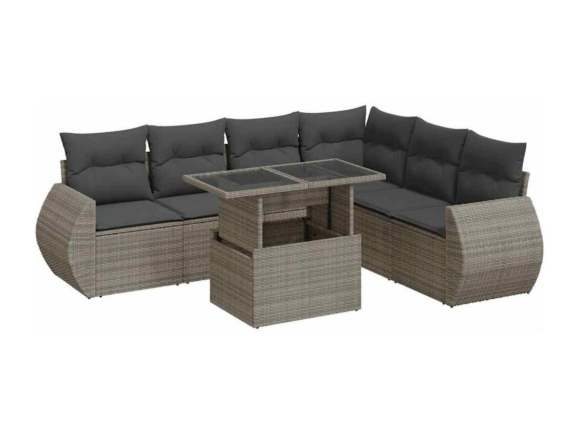Salon de jardin avec coussins 7 pièces gris résine tressée