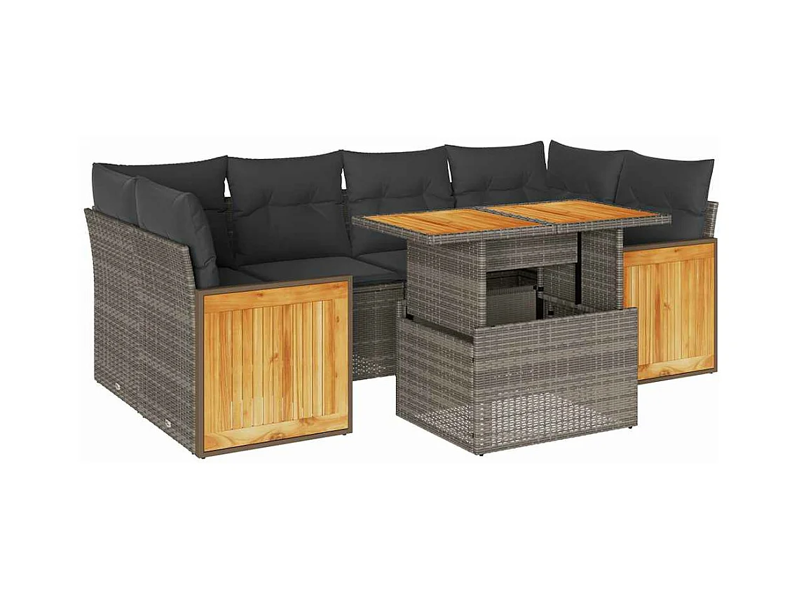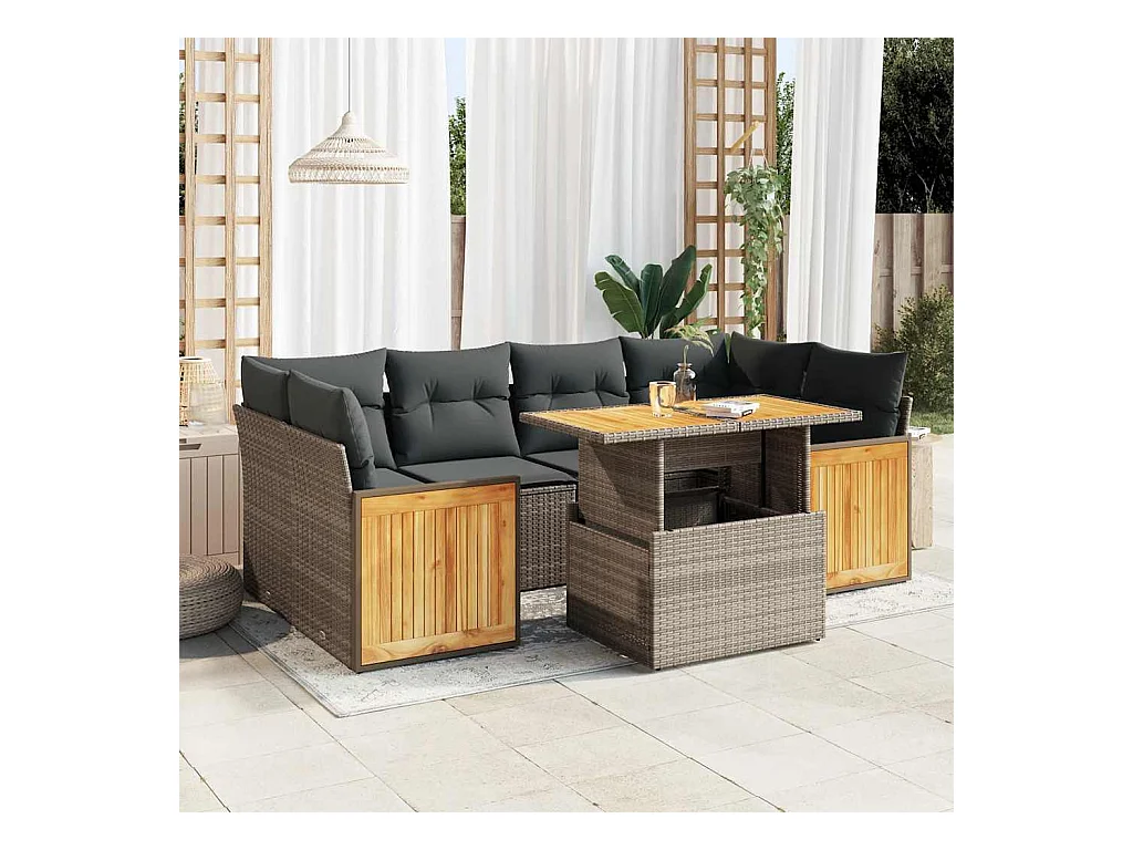 Salon de jardin avec coussins 7 pièces gris résine tressée acacia