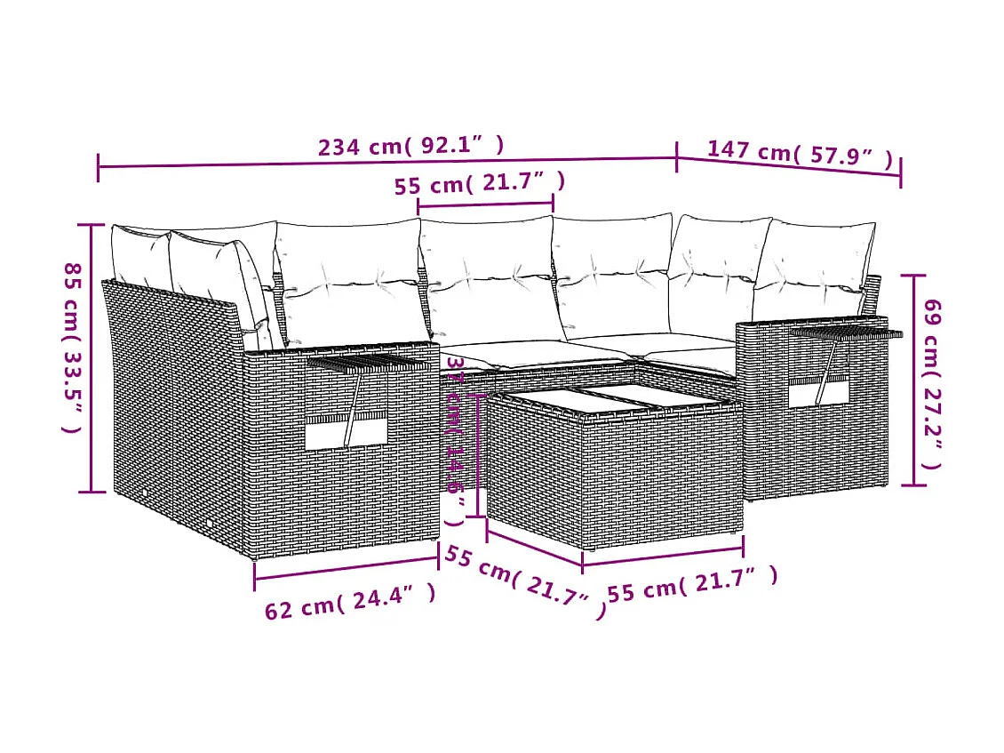 Salon de jardin avec coussins 7 pièces marron résine tressée