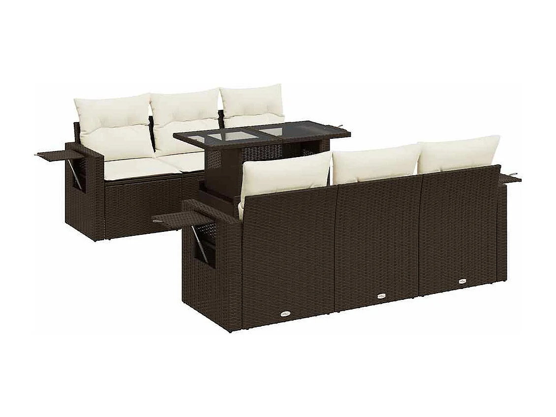 Salon de jardin avec coussins 7 pièces marron résine tressée