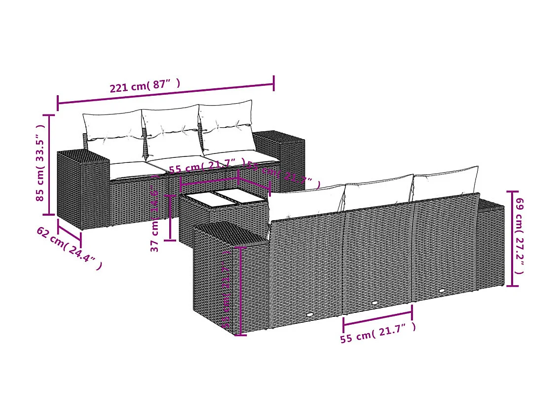 Salon de jardin avec coussins 7 pièces marron résine tressée