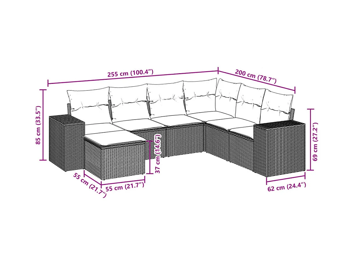 Salon de jardin 8 pièces avec coussins marron résine tressée