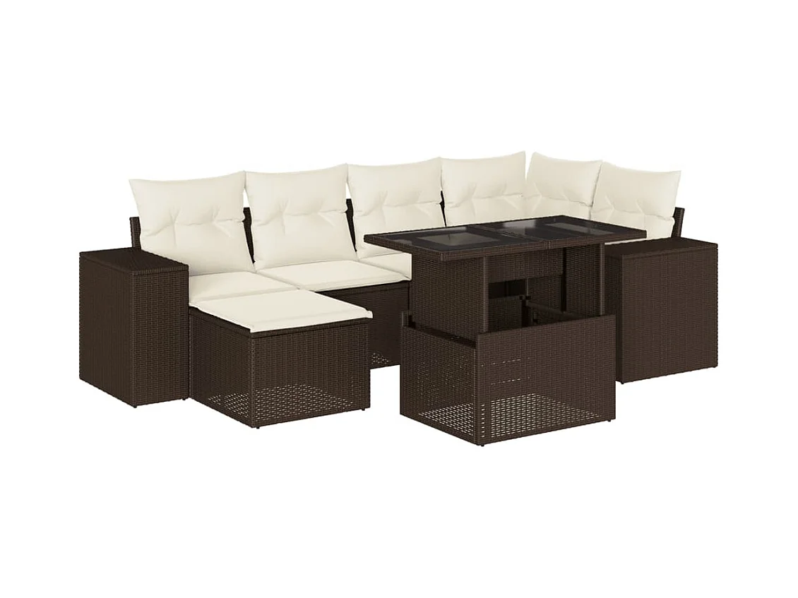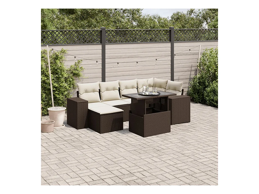 Salon de jardin avec coussins 7 pièces marron résine tressée
