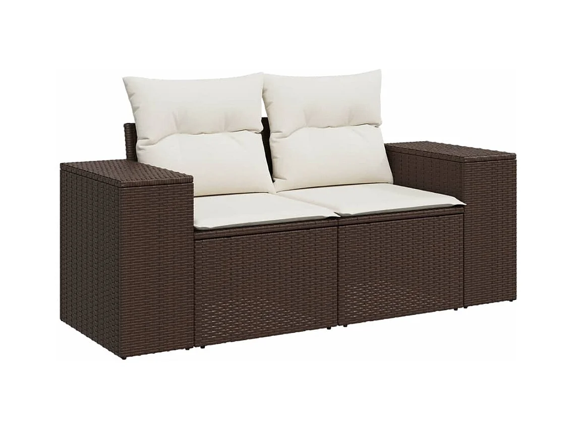 Salon de jardin 8 pièces avec coussins marron résine tressée
