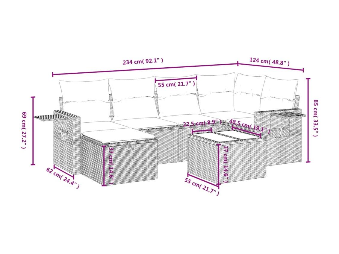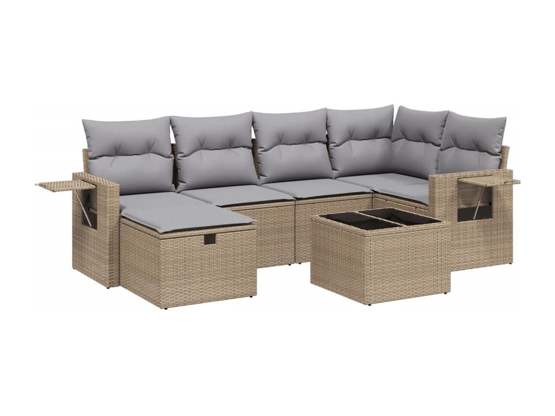 Salon de jardin avec coussins 7 pièces mélange beige résine tressée