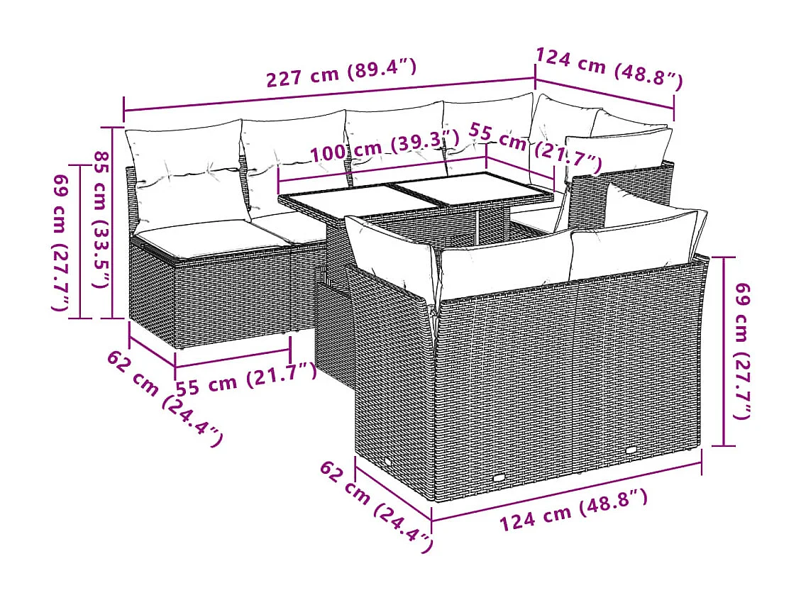Salon de jardin avec coussins 8 pcs beige résine tressée