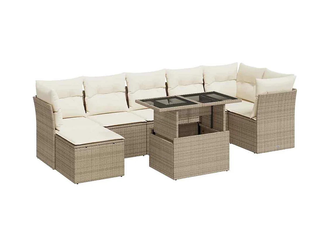 Salon de jardin avec coussins 8 pcs beige résine tressée