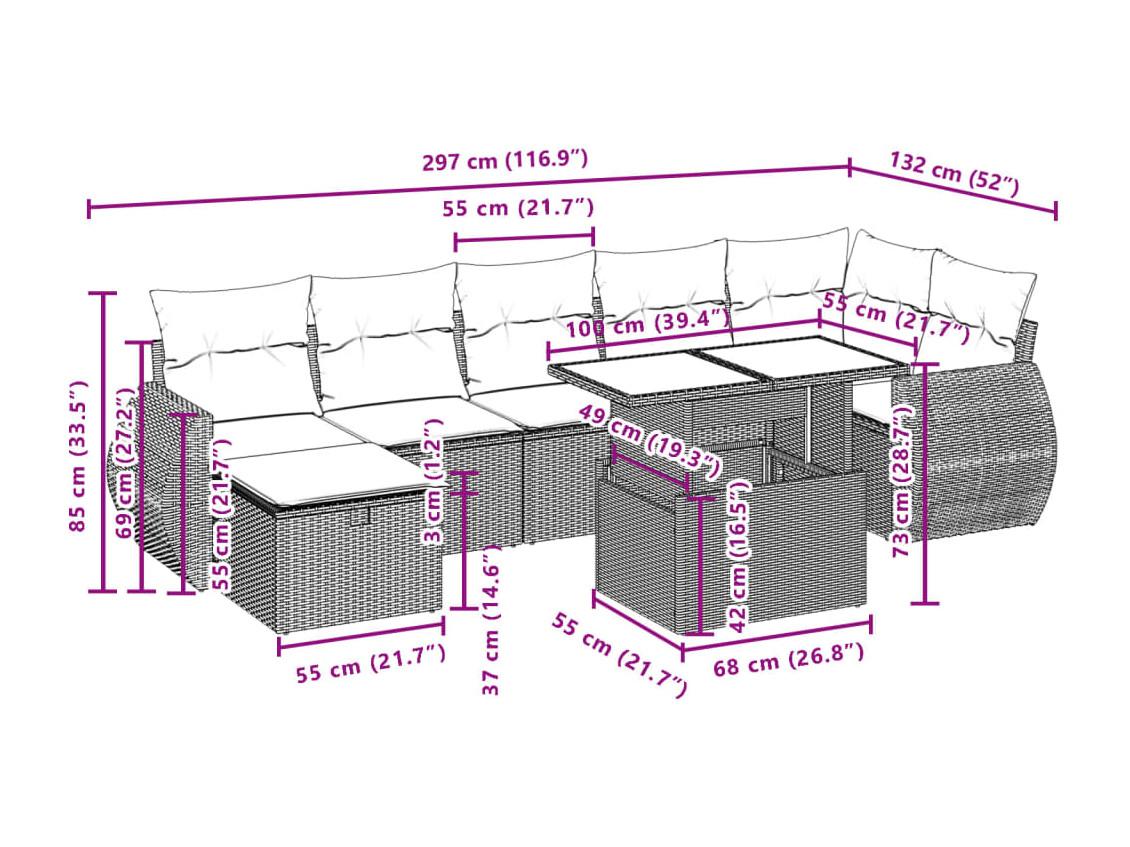 Salon de jardin avec coussins 8 pcs beige résine tressée