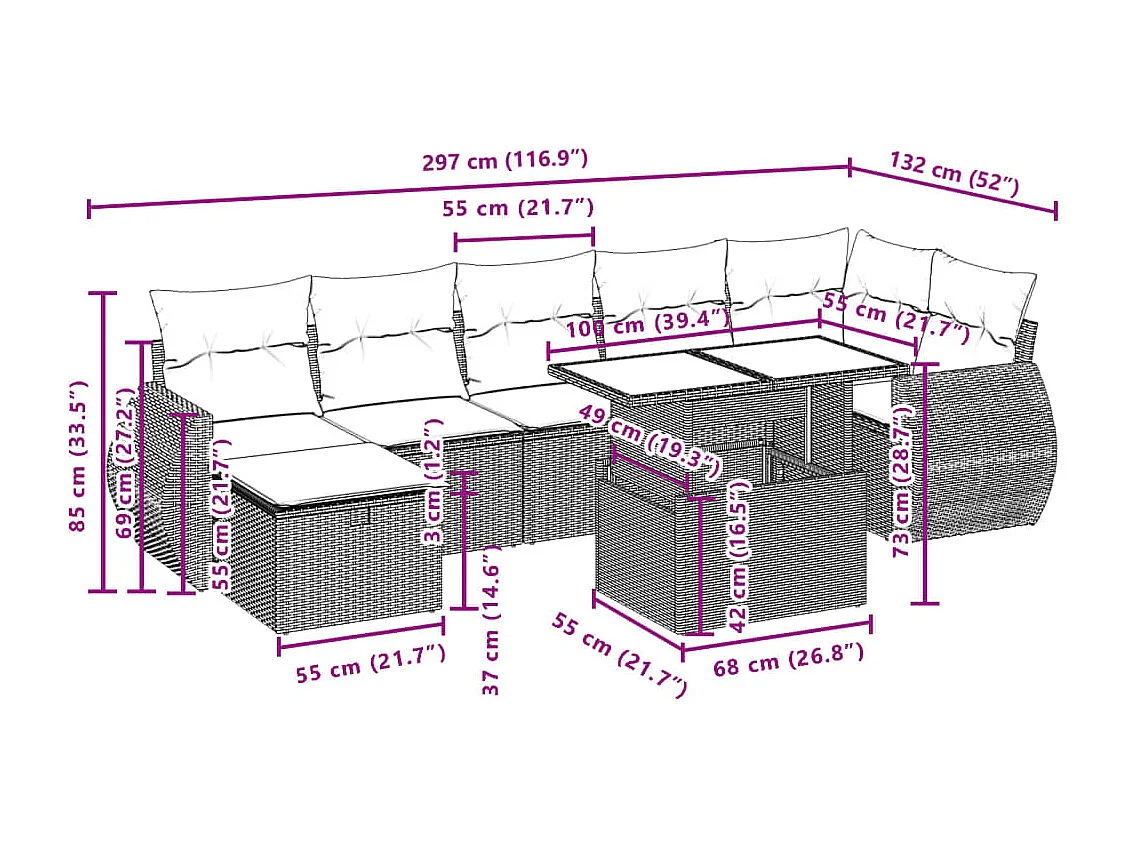 Salon complet de jardin Canapé 2 places et 2 fauteuils