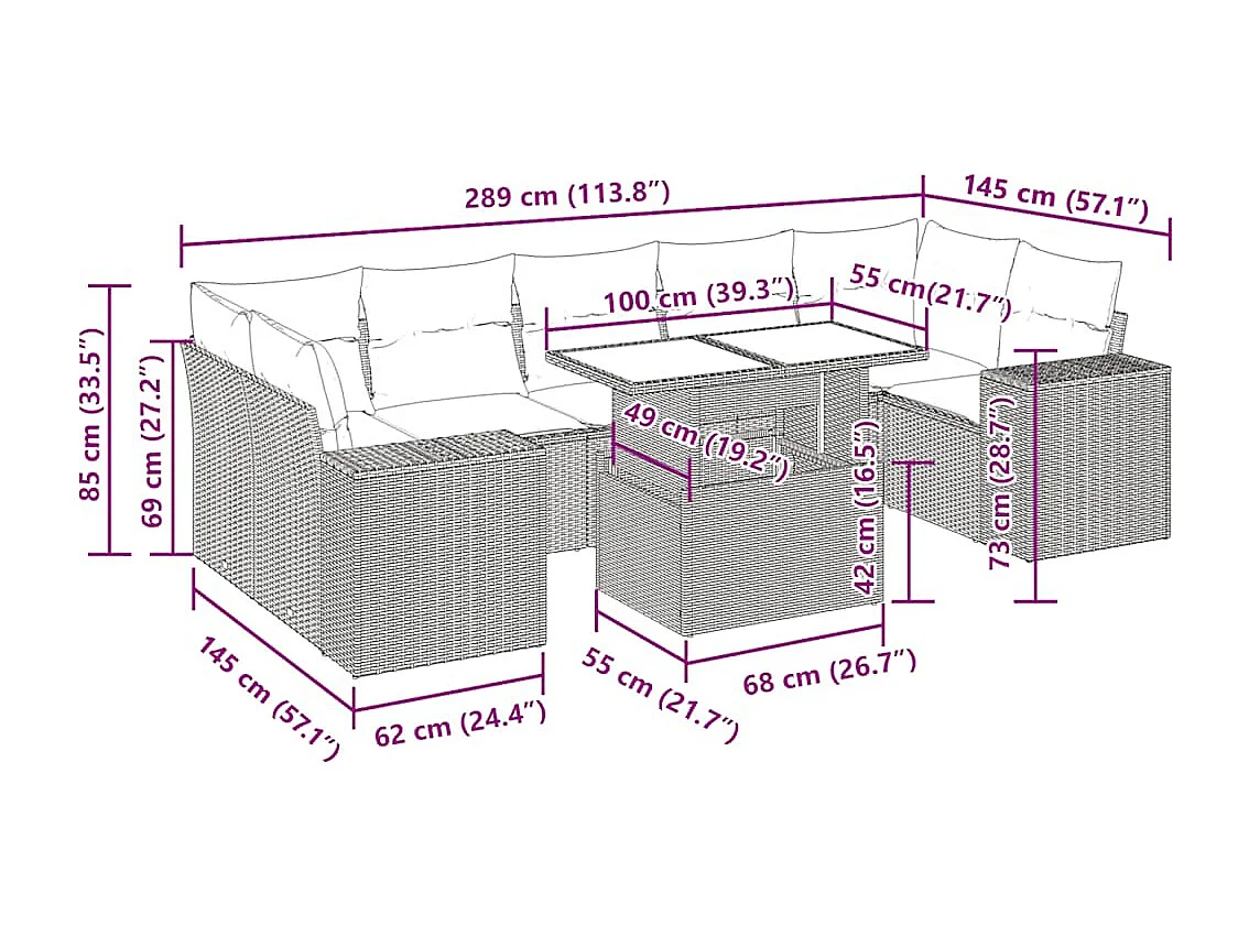 Salon de jardin avec coussins 8 pcs beige résine tressée