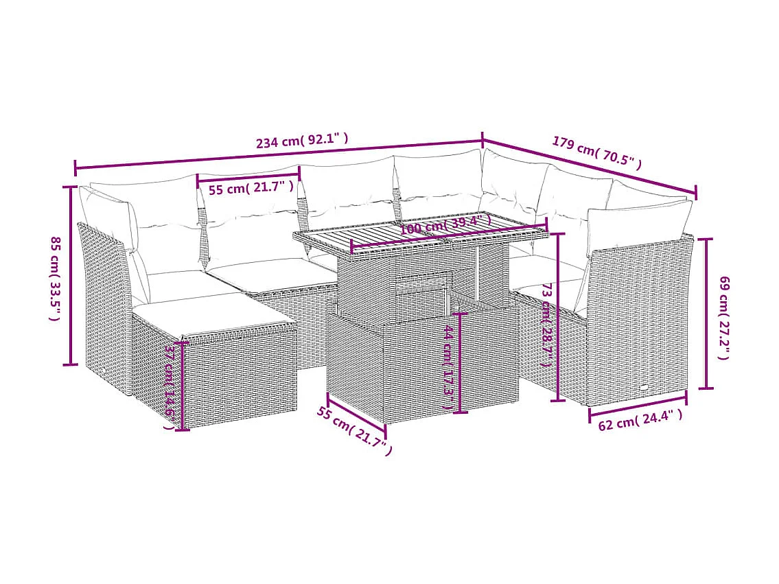 Salon complet de jardin Canapé 2 places et 2 fauteuils