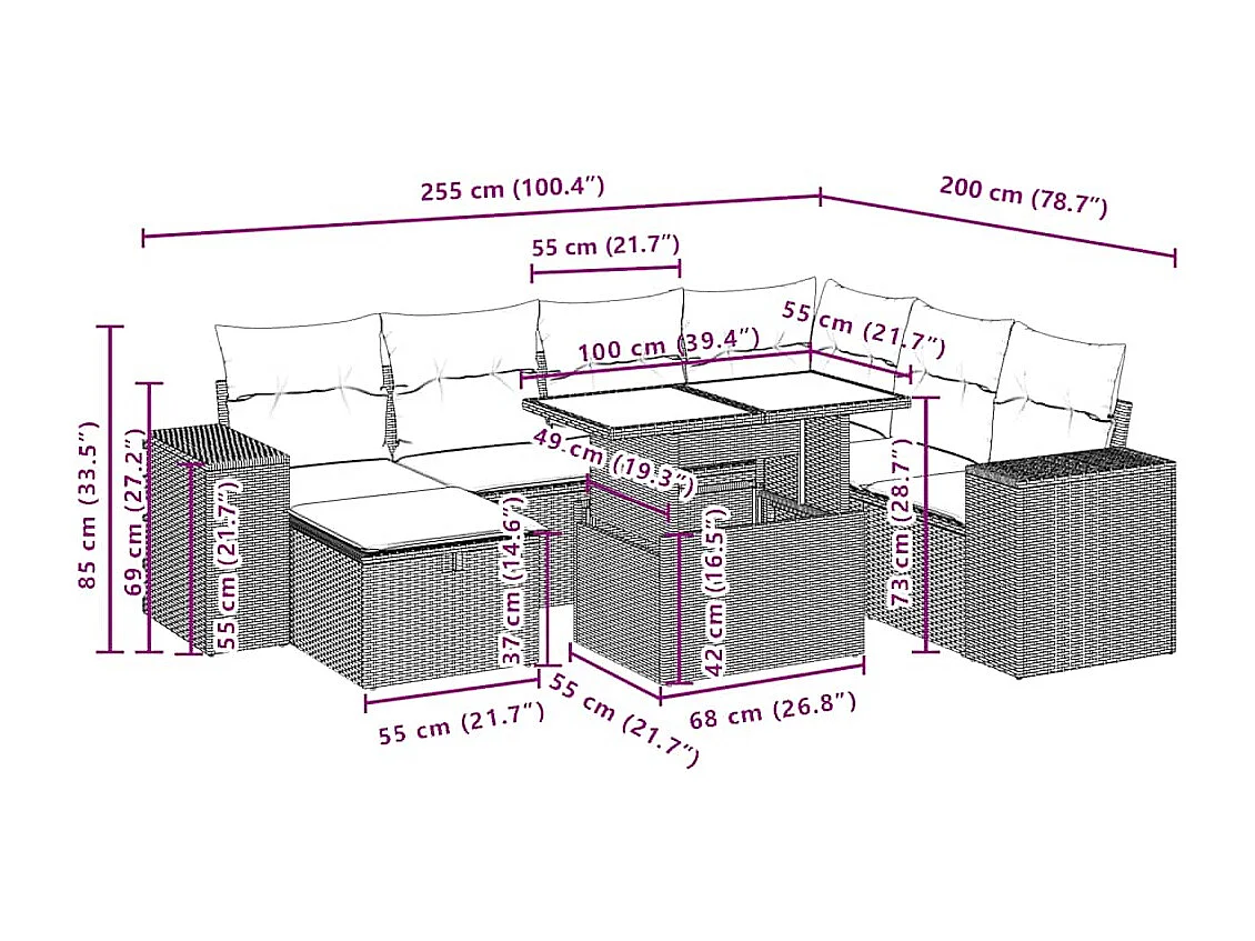 Salon complet de jardin Canapé 2 places et 2 fauteuils