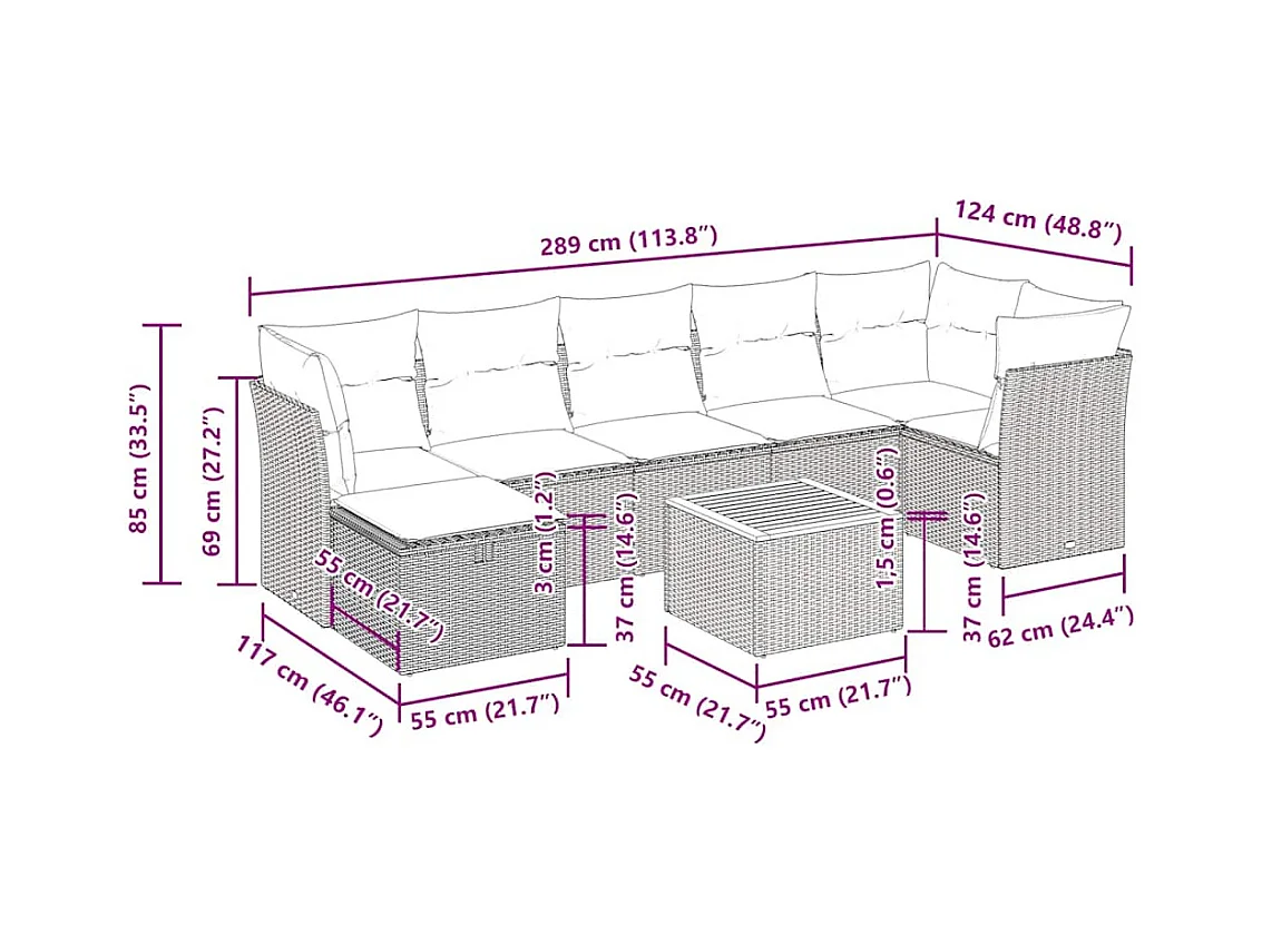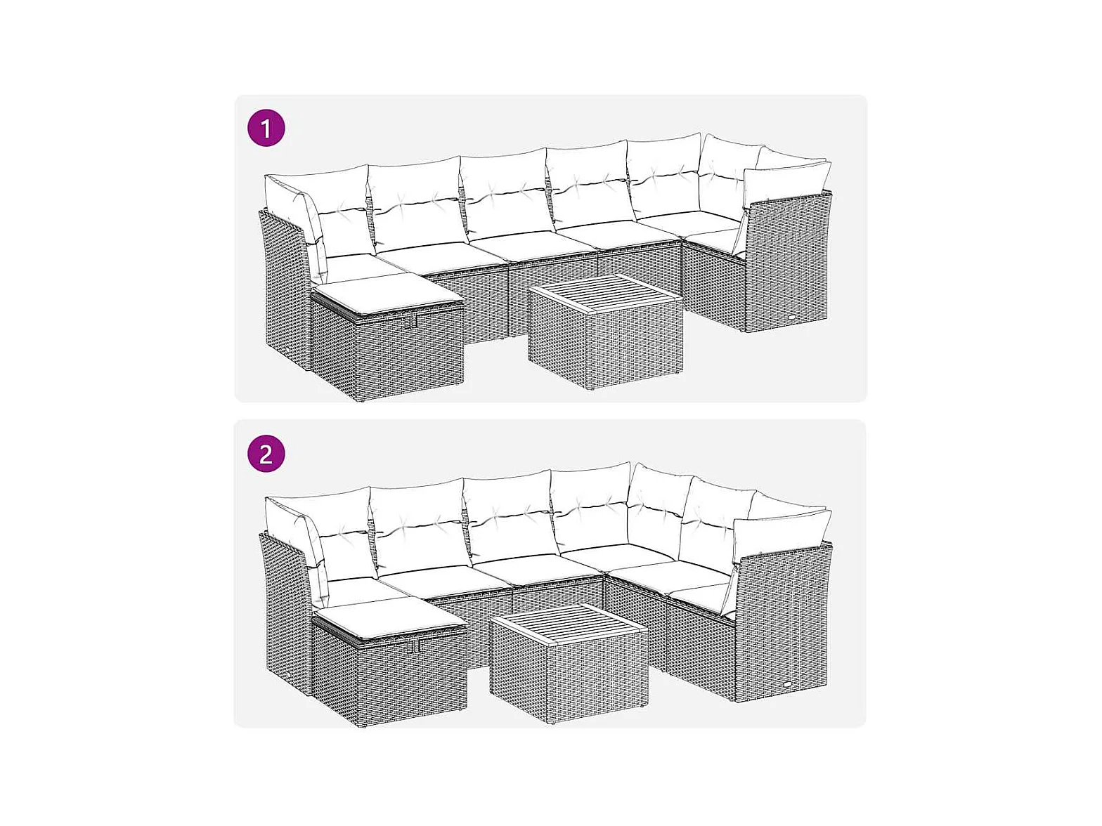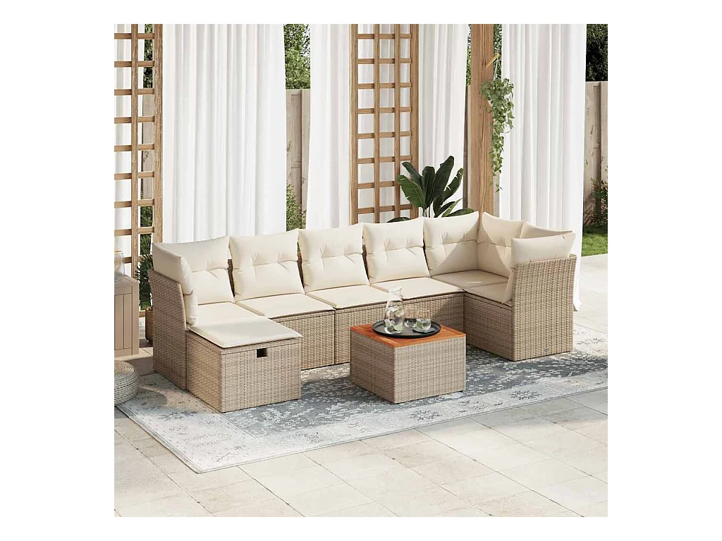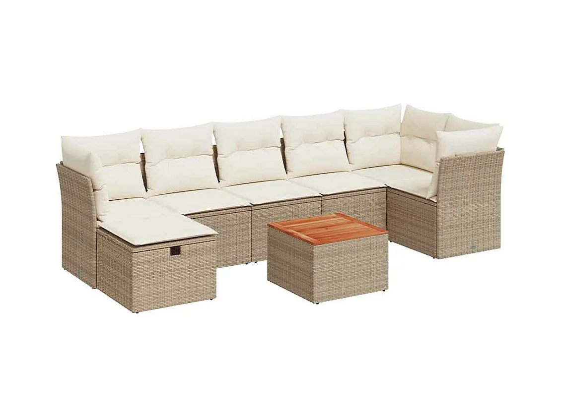 Salon de jardin avec coussins 8 pcs beige résine tressée