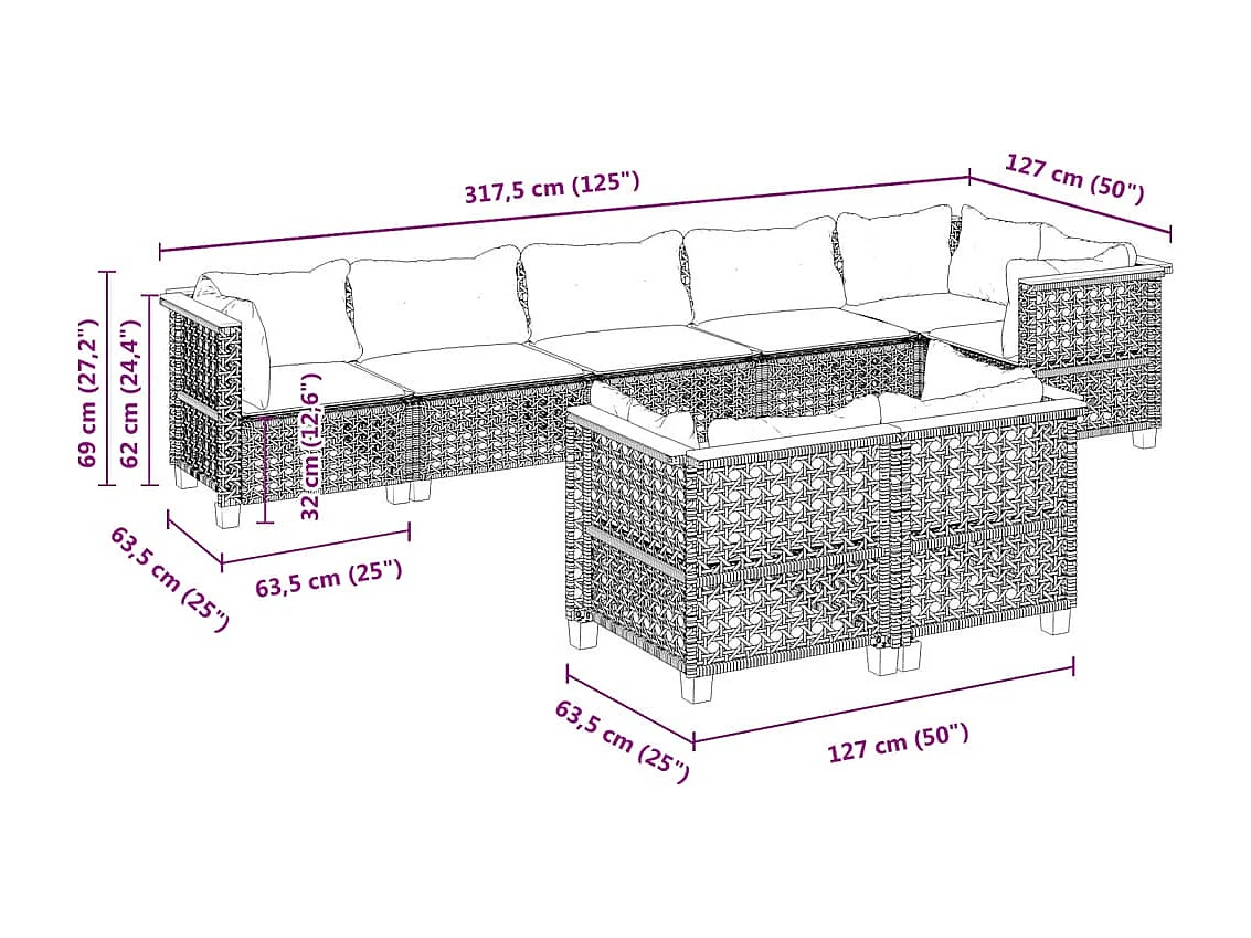 Salon de jardin avec coussins 8 pcs beige résine tressée