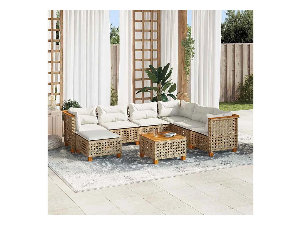 Salon de jardin avec coussins 8 pcs beige résine tressée