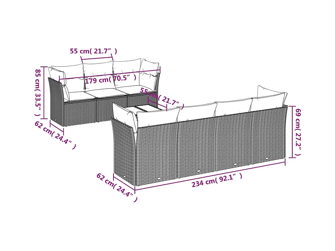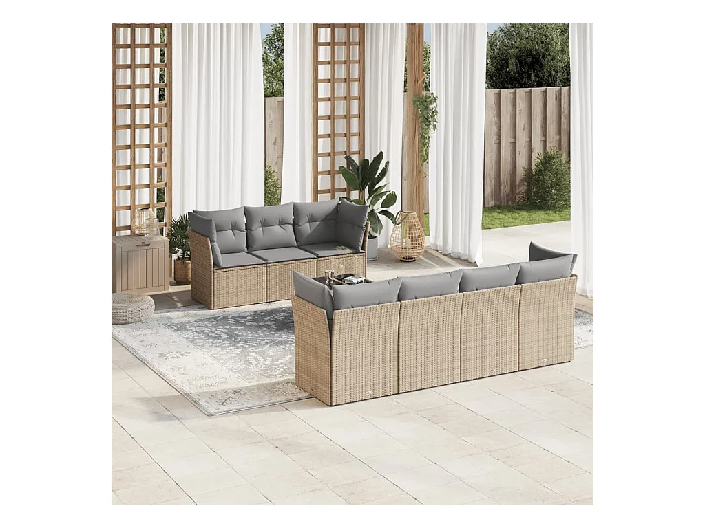 Salon de jardin avec coussins 8 pcs beige résine tressée