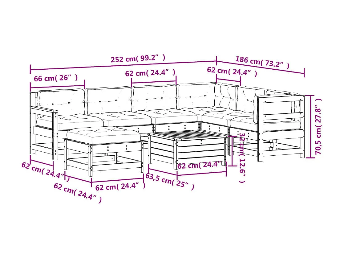 Salon de jardin avec coussins 8 pcs blanc bois de pin massif