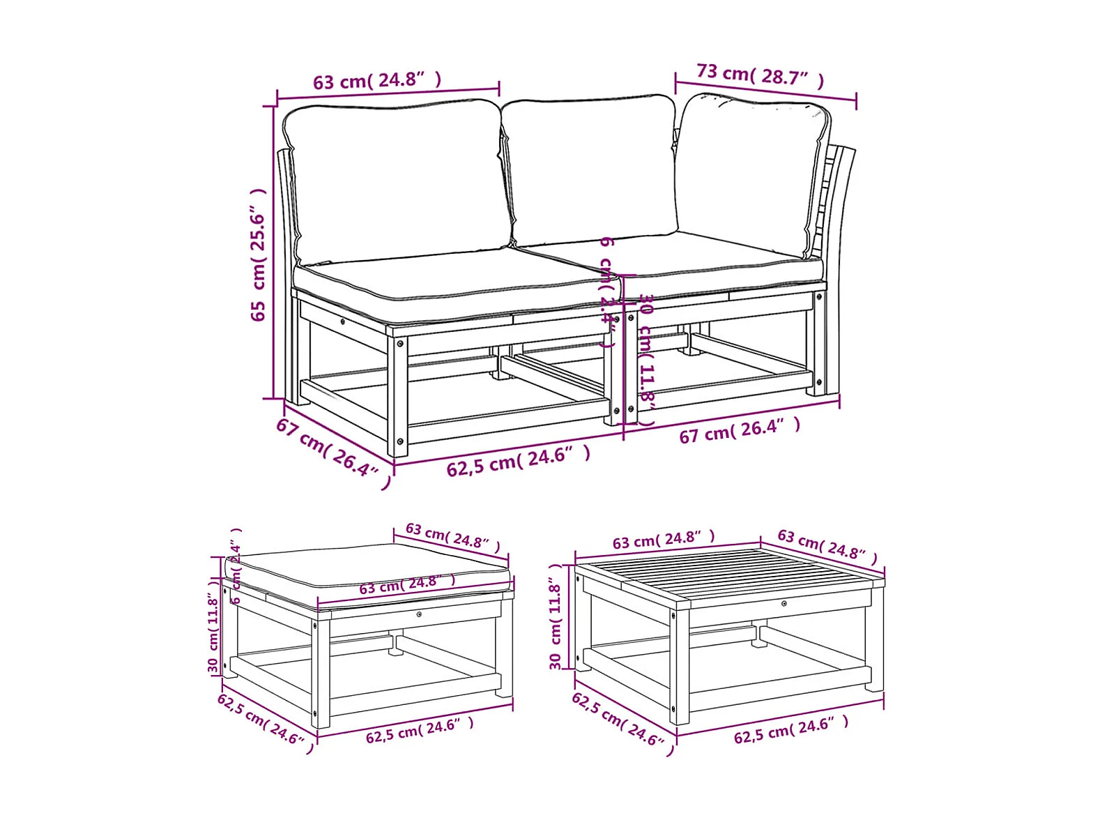 Salon de jardin 4 pcs avec coussins Bois d'acacia solide