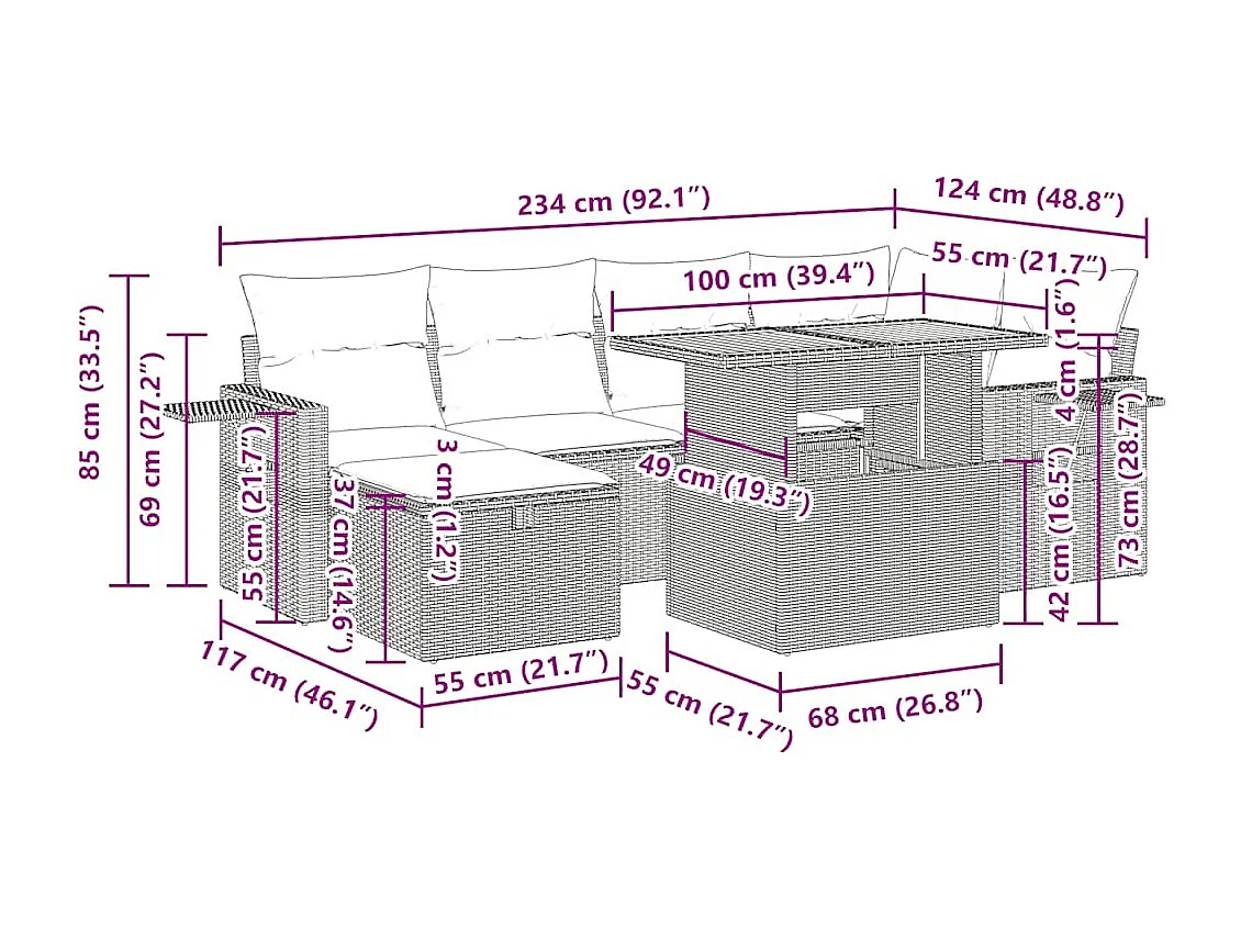 Salon complet de jardin Canapé 2 places et 2 fauteuils