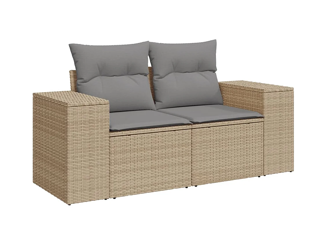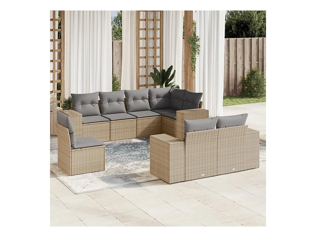 Salon de jardin avec coussins 8 pièces beige résine tressée
