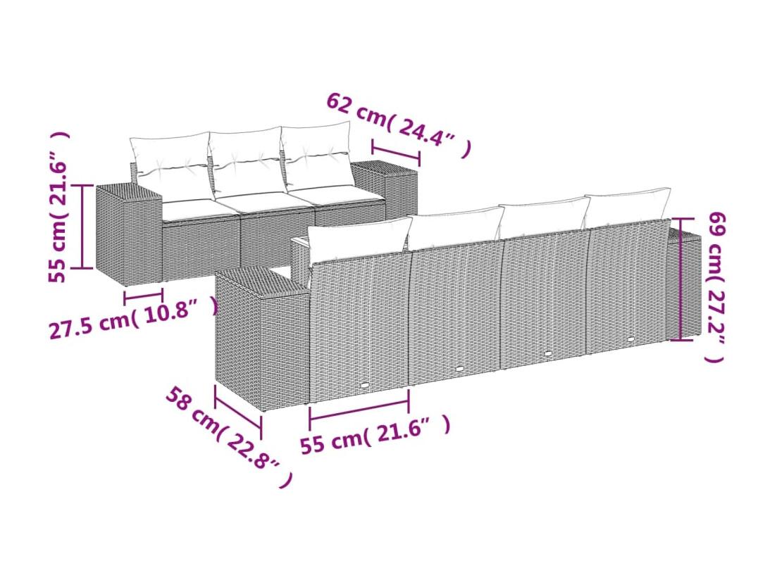 Salon de jardin avec coussins 8 pièces beige résine tressée