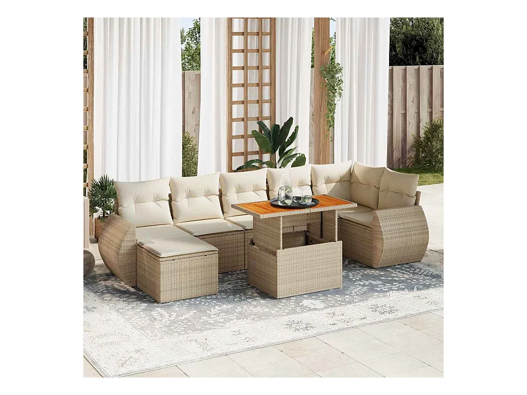Salon de jardin avec coussins 8 pièces beige résine tressée acacia