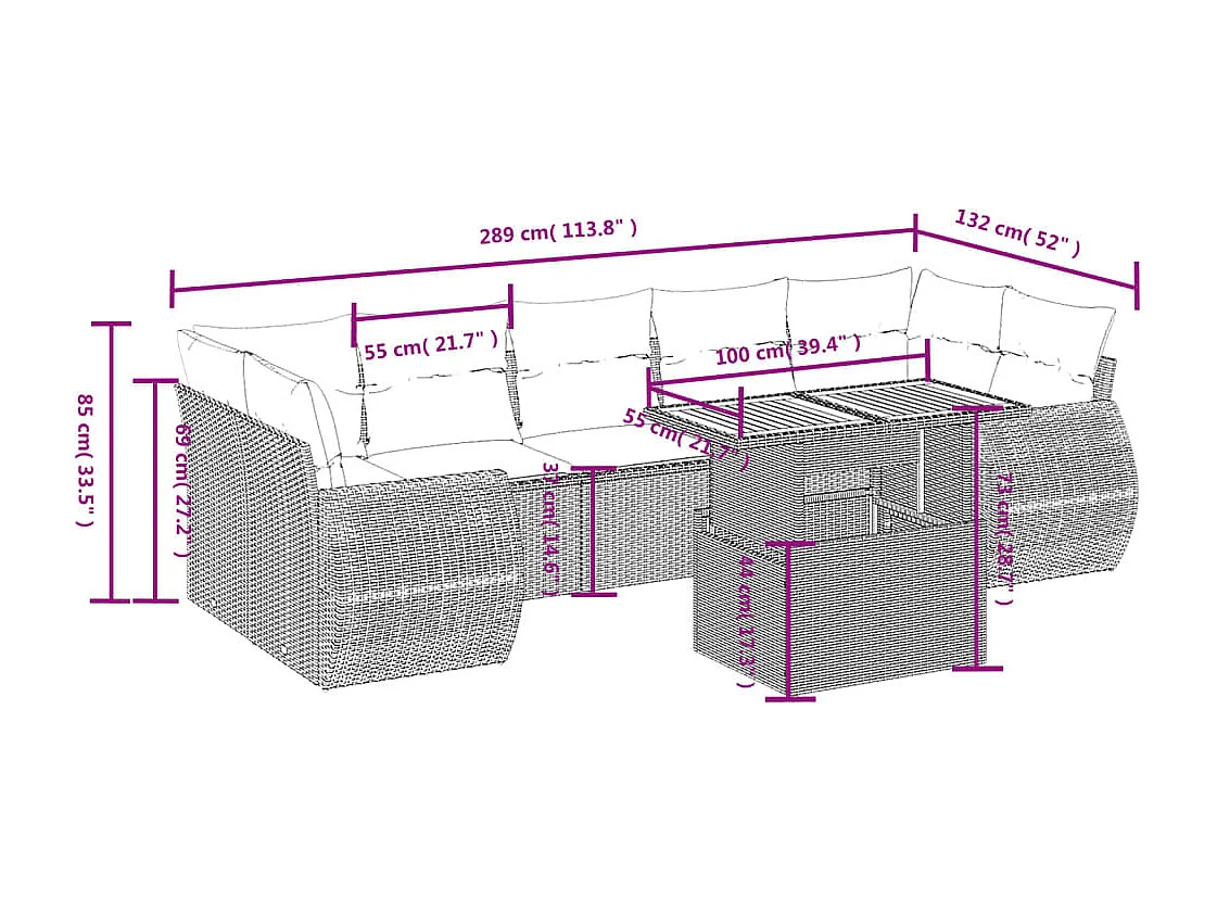 Salon de jardin avec coussins 8 pièces beige résine tressée