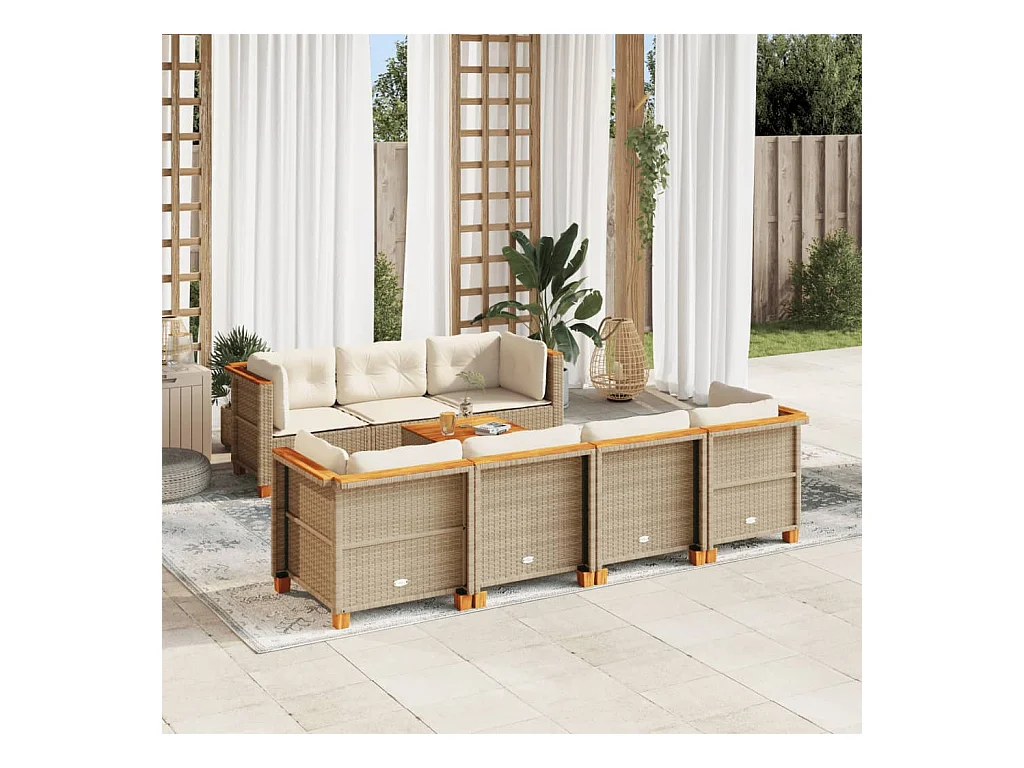 Salon de jardin avec coussins 8 pièces beige résine tressée