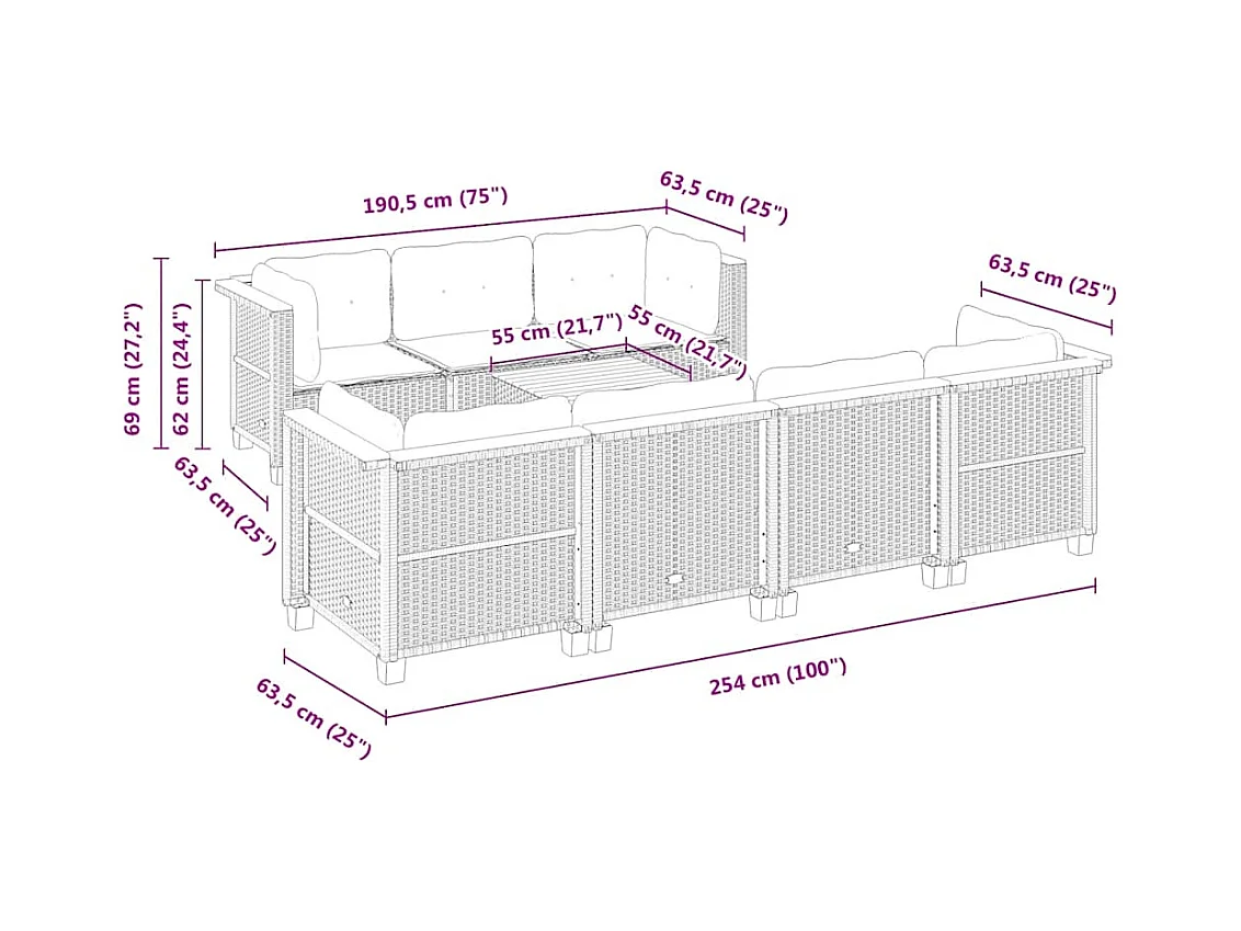 Salon complet de jardin Canapé 2 places et 2 fauteuils