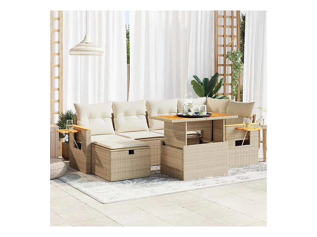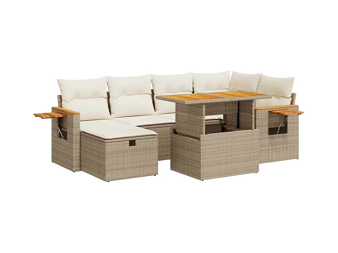 Salon de jardin avec coussins 7 pièces beige résine tressée