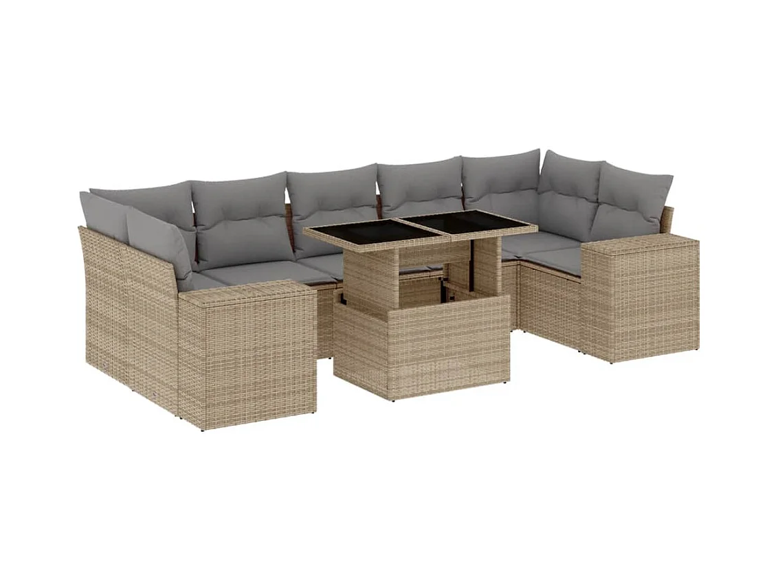 Salon de jardin avec coussins 8 pièces beige résine tressée