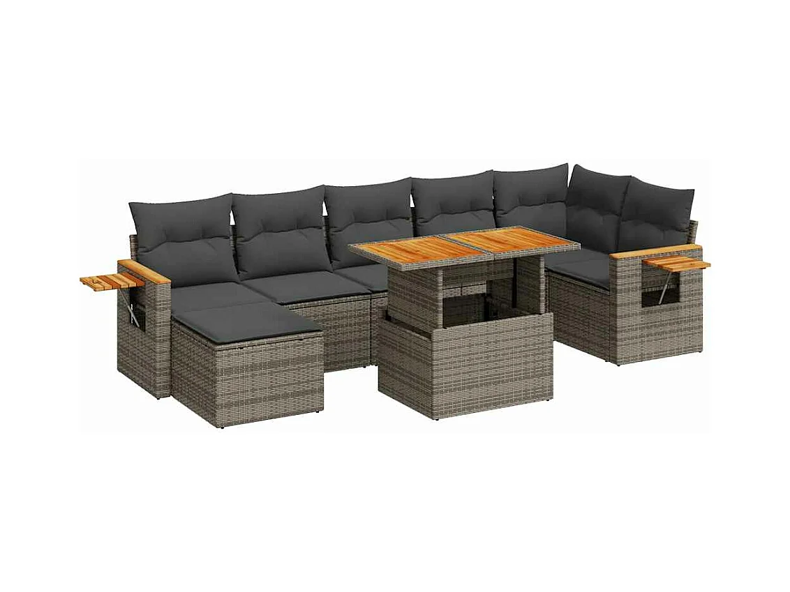 Salon de jardin avec coussins 8 pièces gris résine tressée acacia