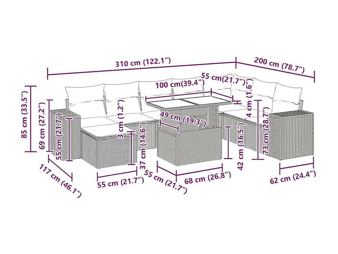 Salon complet de jardin Canapé 2 places et 2 fauteuils