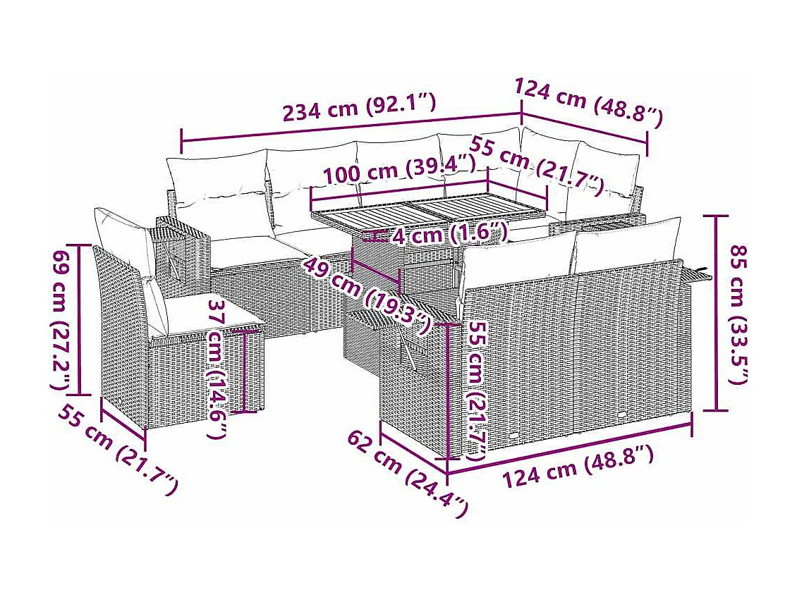 Salon complet de jardin Canapé 2 places et 2 fauteuils