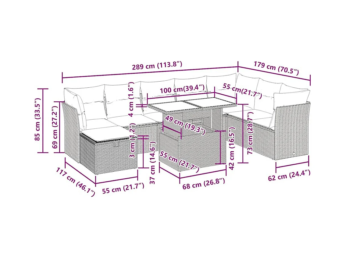 Salon de jardin avec coussins 9 pcs beige résine tressée