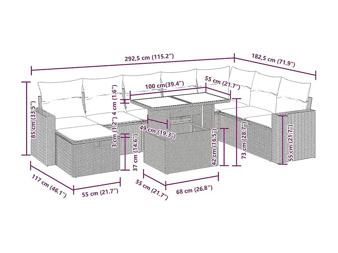 Salon de jardin avec coussins 9 pcs beige résine tressée