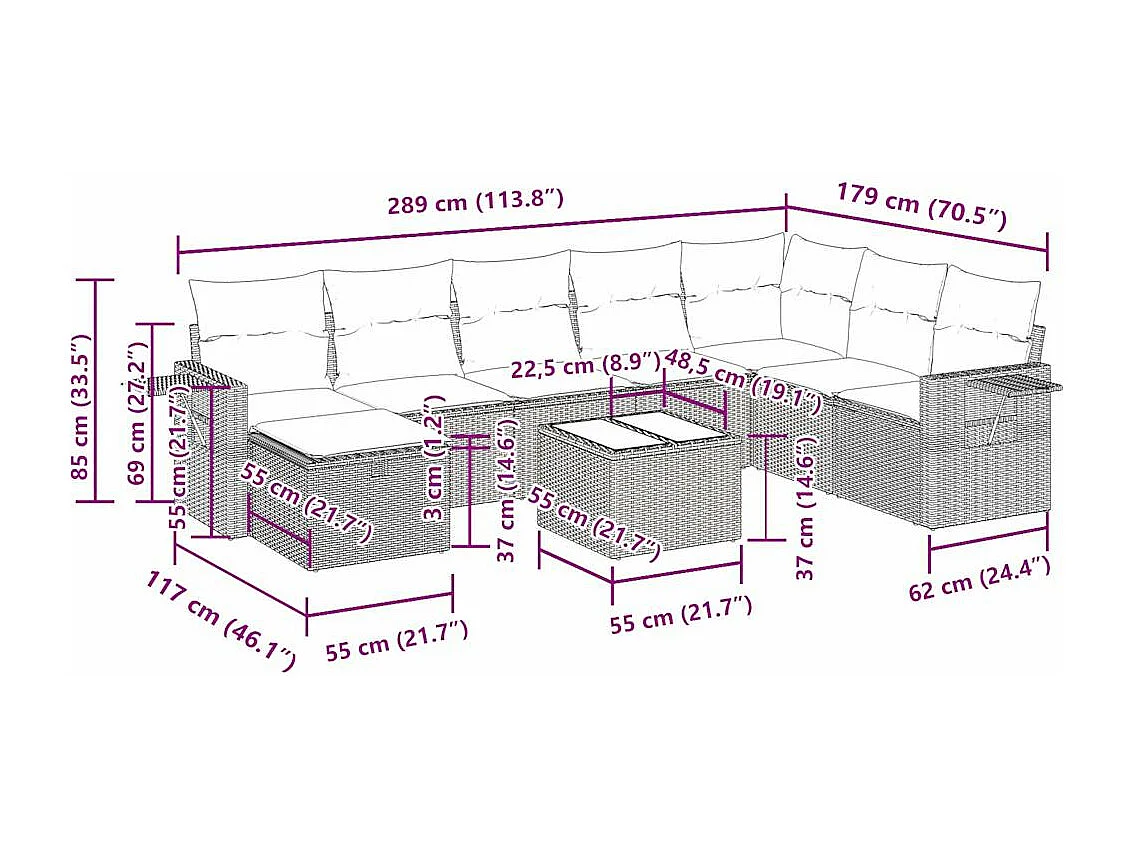 Salon de jardin avec coussins 8 pcs beige résine tressée