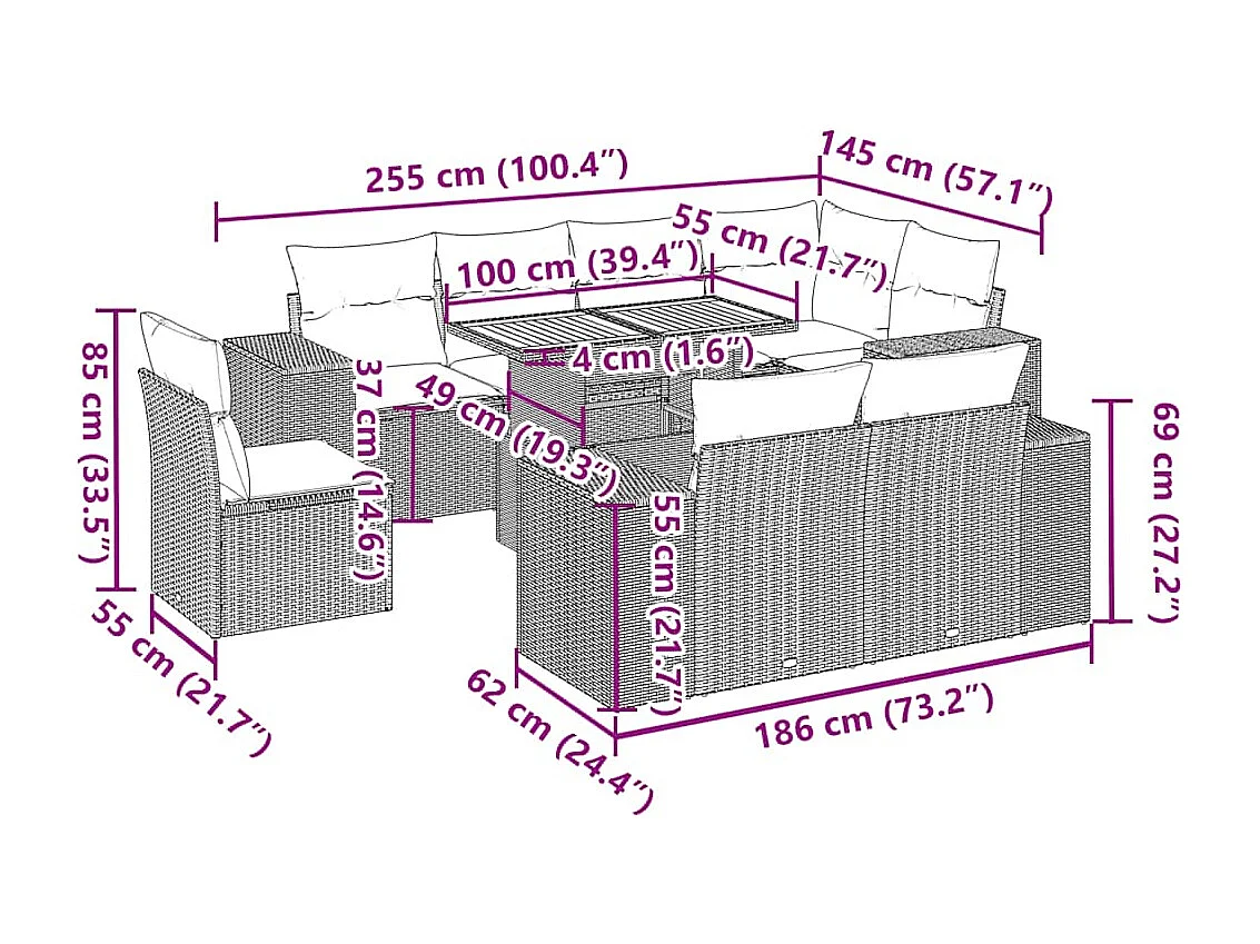 Salon complet de jardin Canapé 2 places et 2 fauteuils