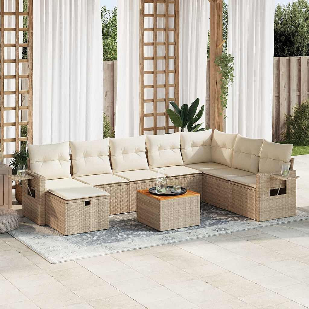 Salon de jardin avec coussins 8 pcs beige résine tressée