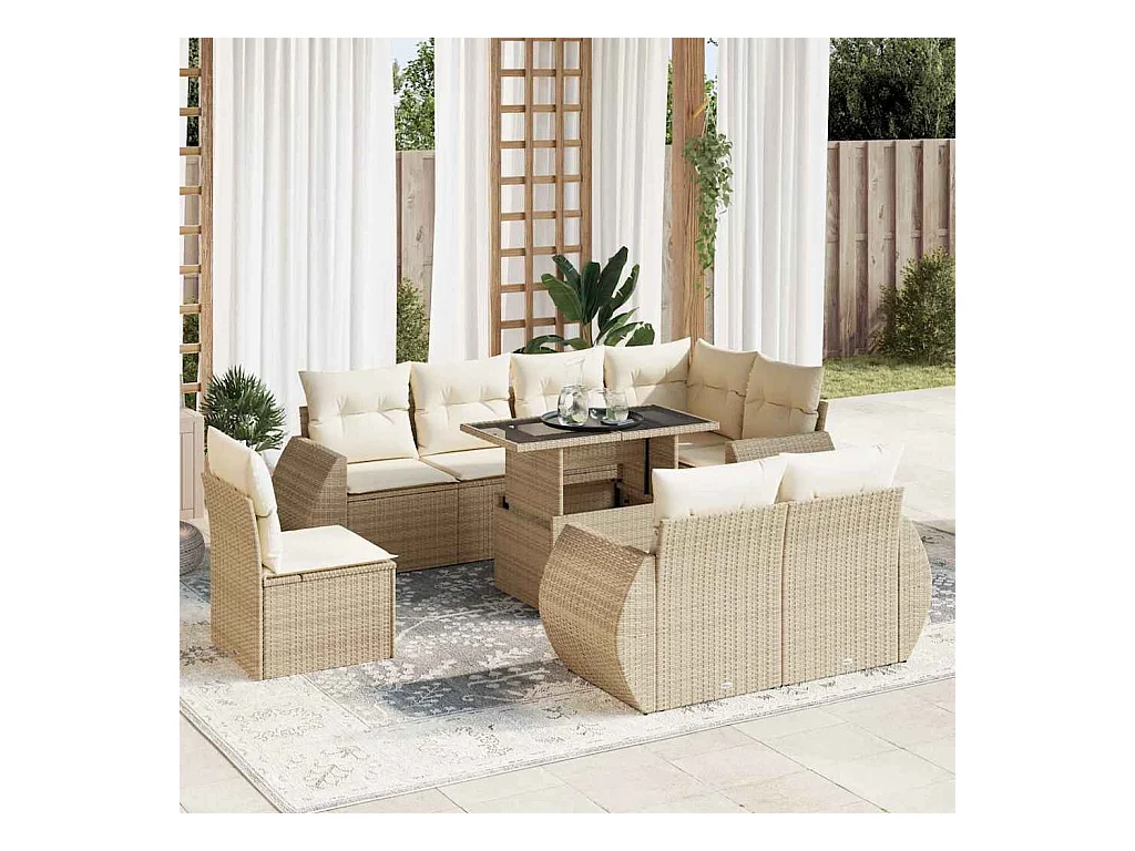 Salon de jardin avec coussins 9 pcs beige résine tressée