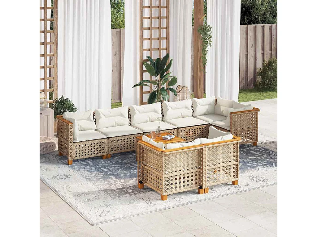 Salon de jardin avec coussins 8 pcs beige résine tressée