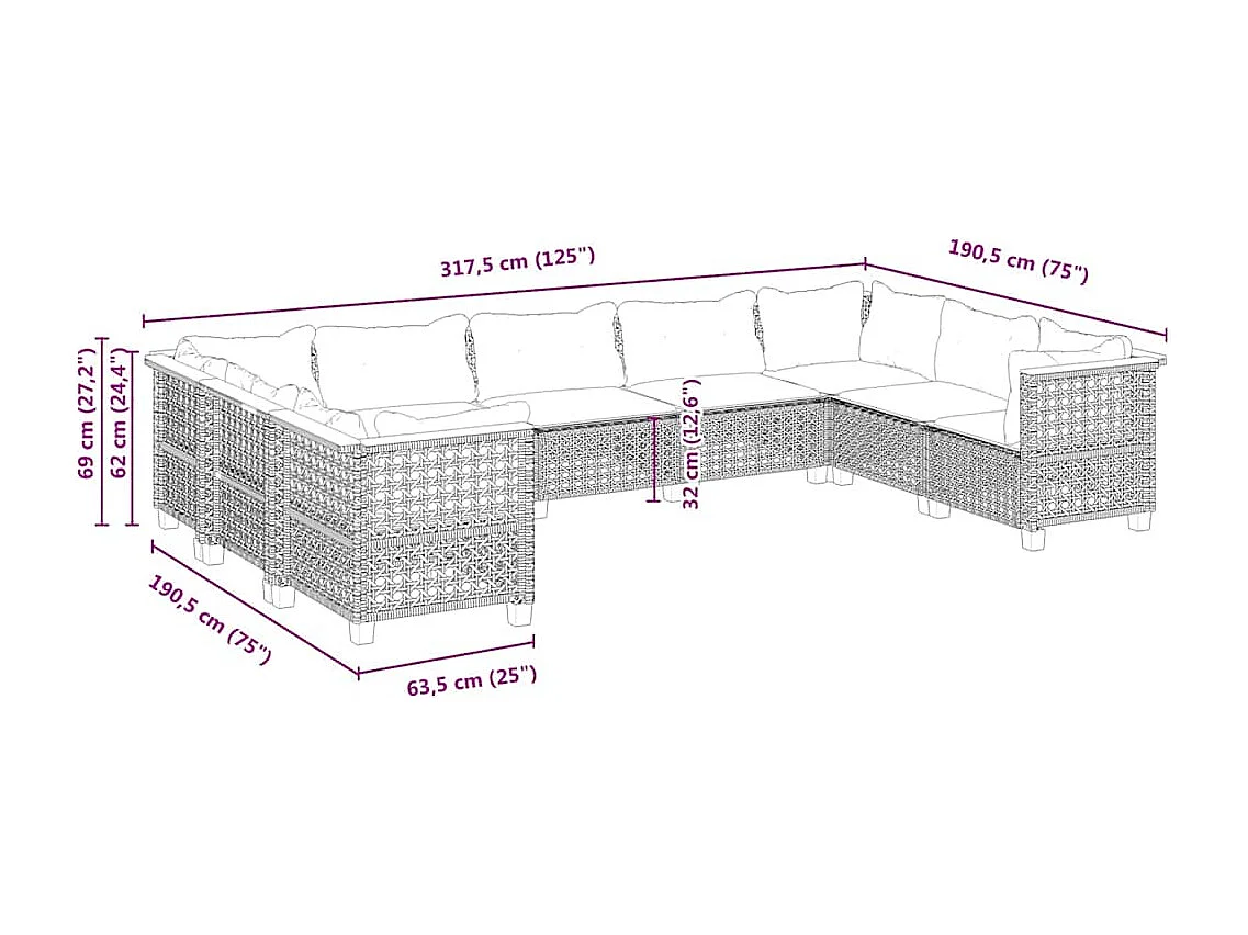 Salon de jardin avec coussins 9 pcs beige résine tressée