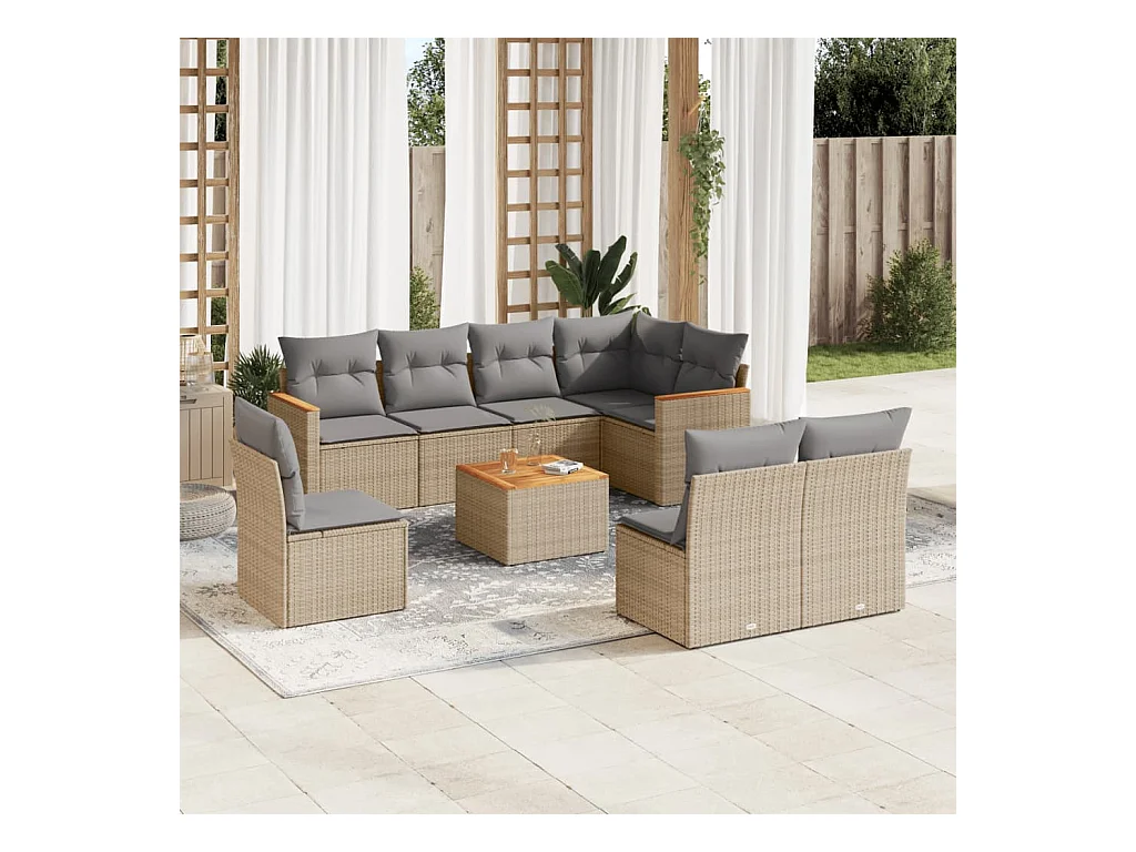 Salon de jardin avec coussins 9 pcs beige résine tressée