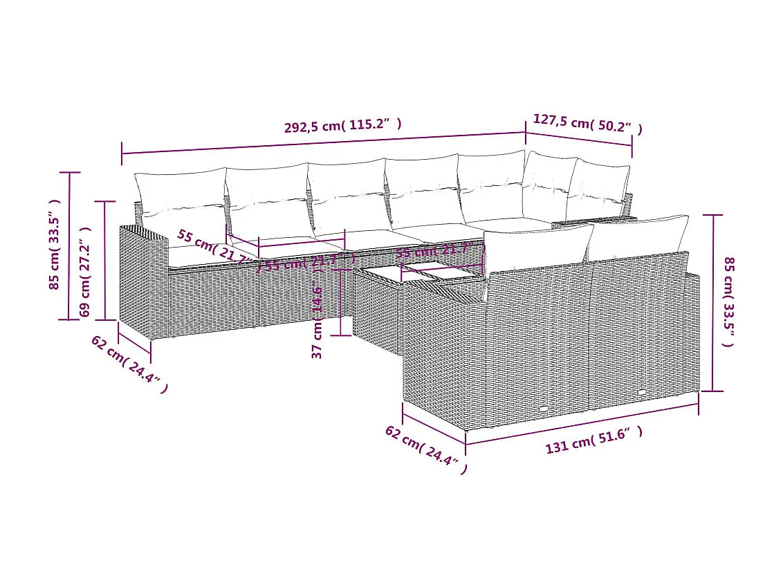 Salon de jardin avec coussins 9 pcs beige résine tressée