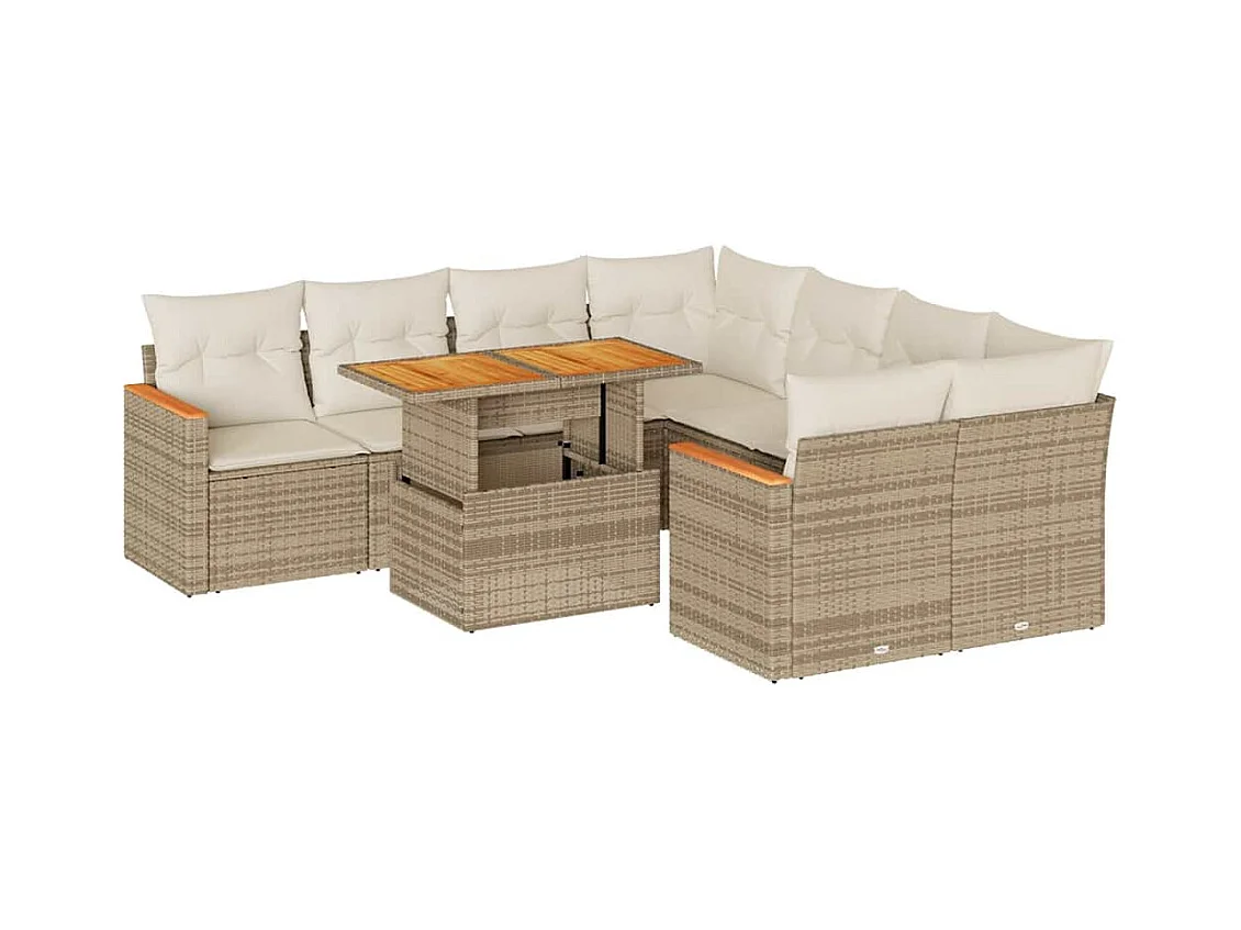 Salon de jardin avec coussins 9 pcs beige résine tressée acacia