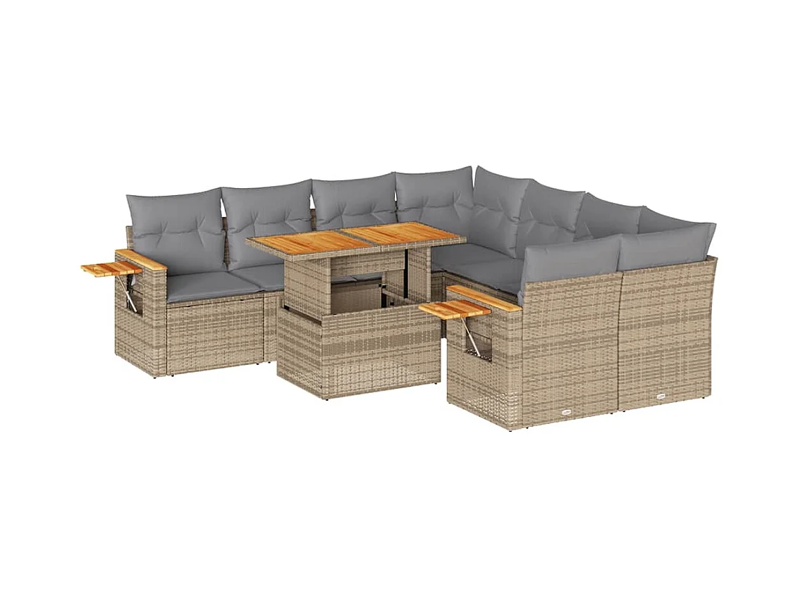 Salon de jardin avec coussins 9 pcs beige résine tressée acacia