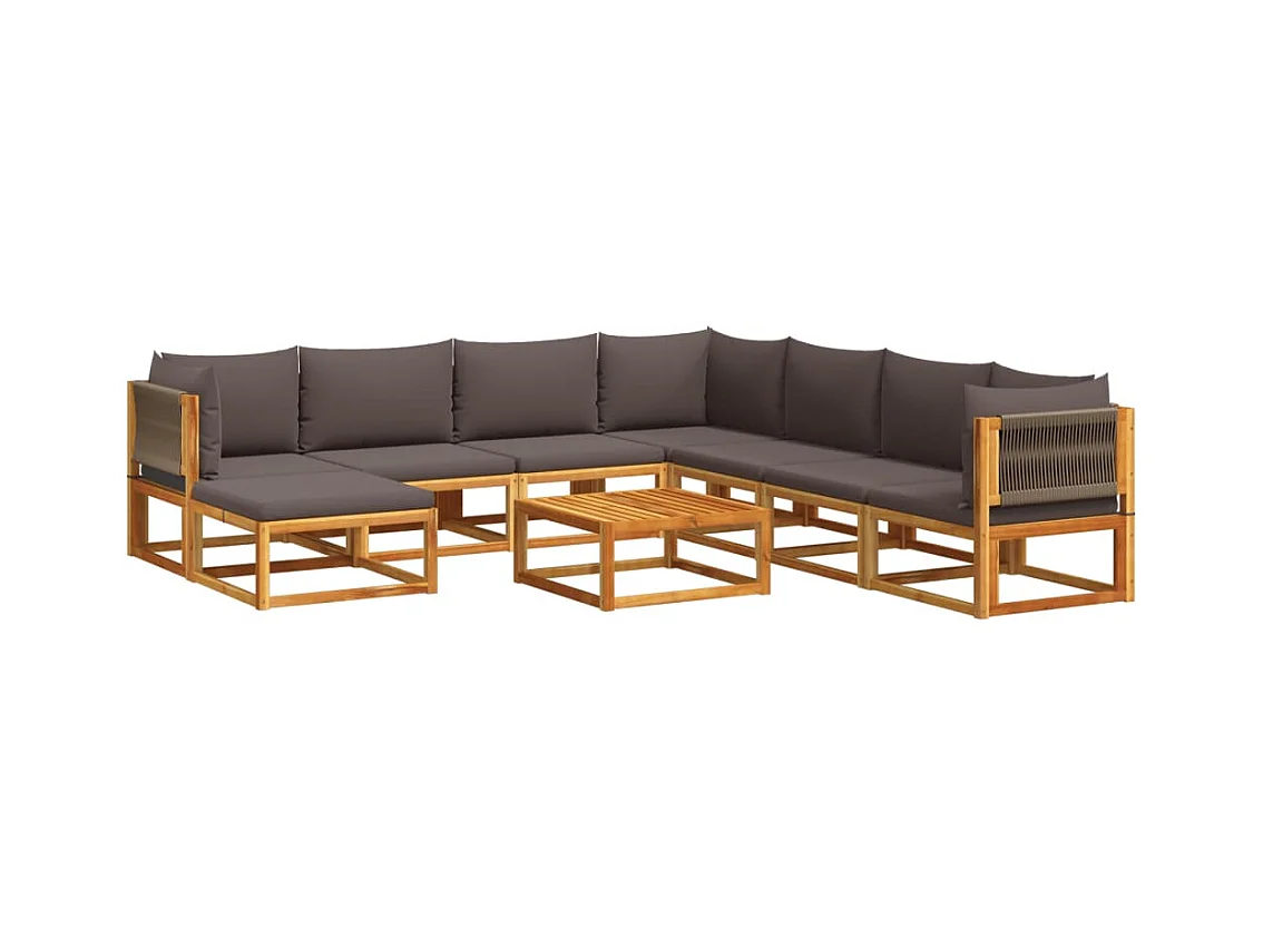Ensemble de canapés de jardin 9 pièces avec coussins en bois d'acacia et corde