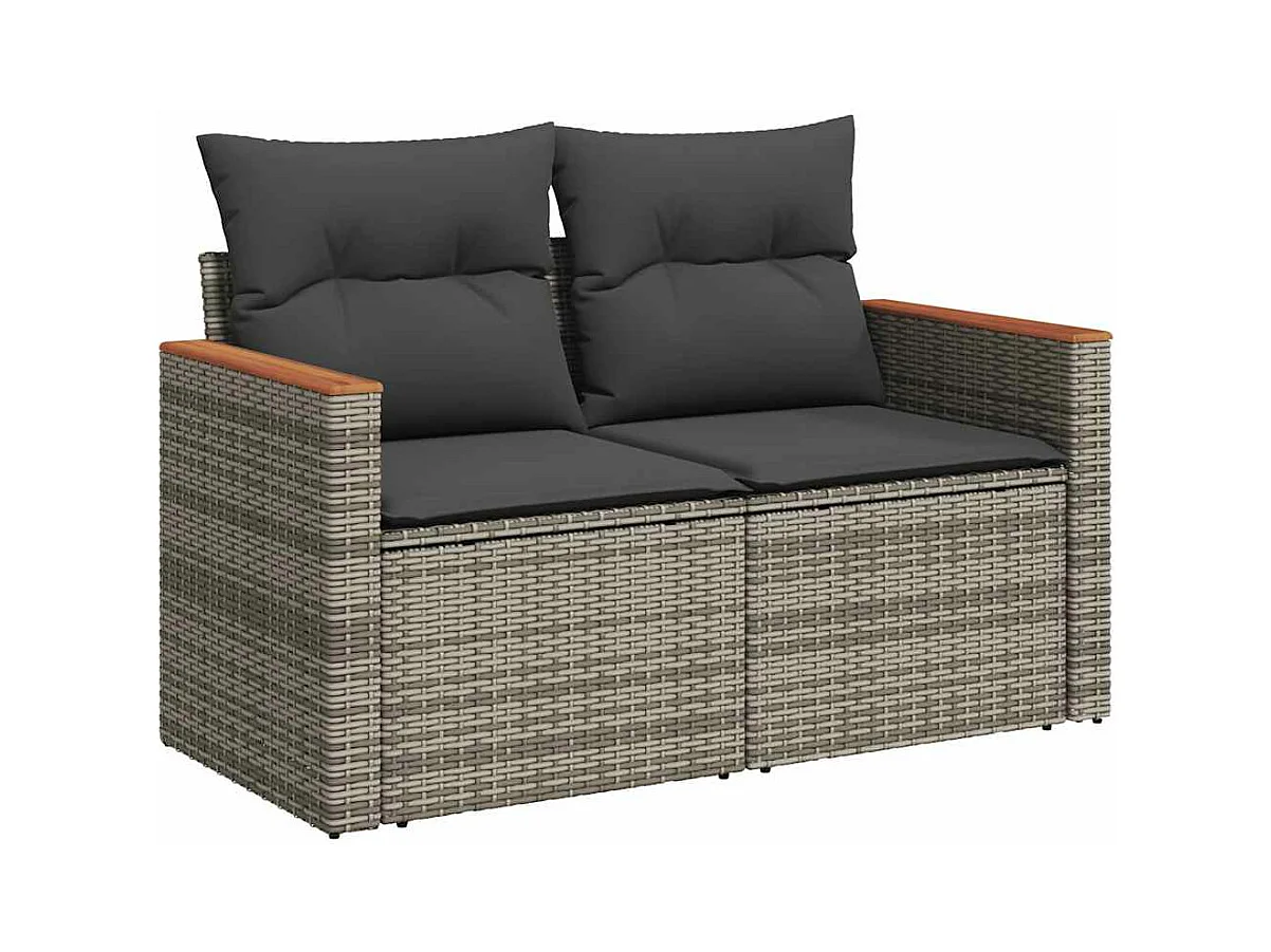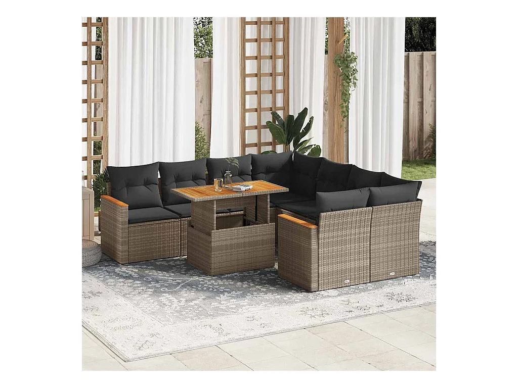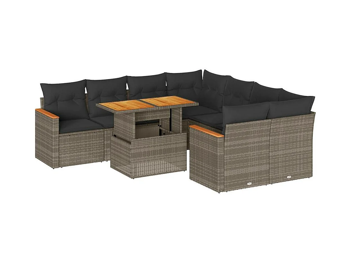 Salon de jardin avec coussins 9 pcs gris résine tressée acacia